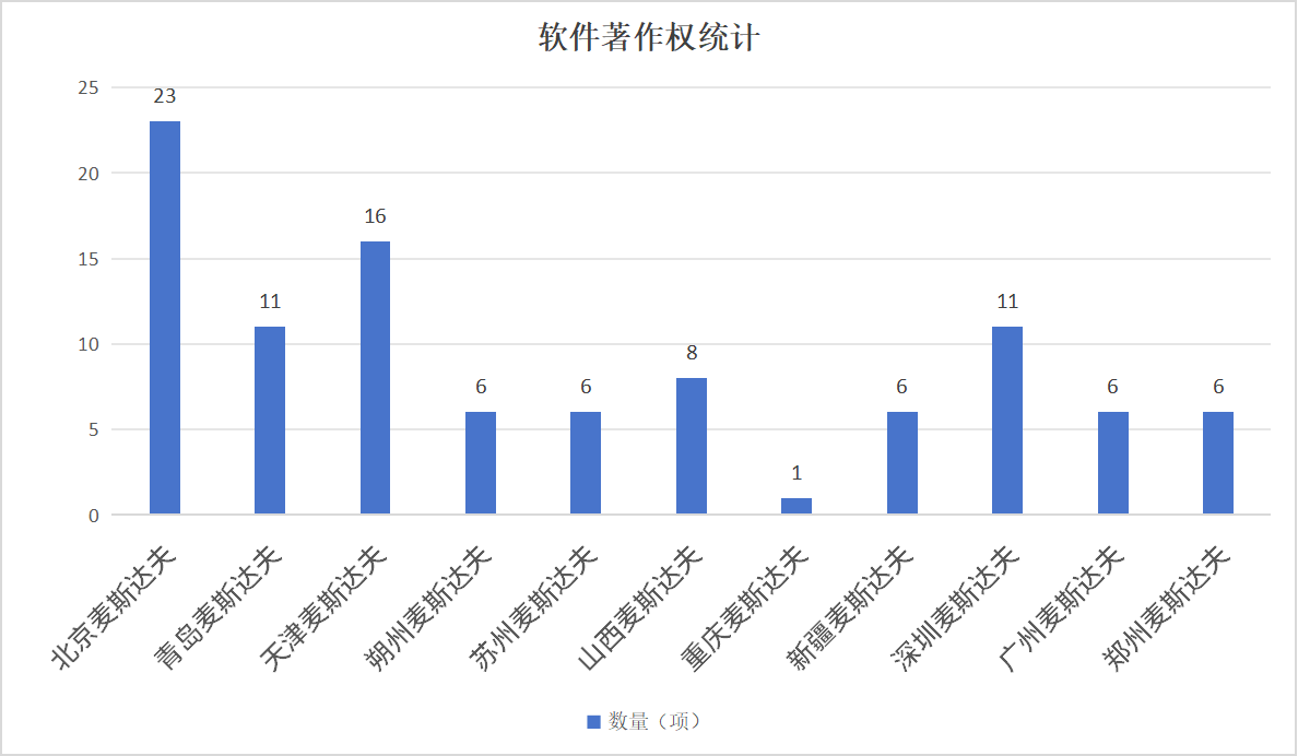 北京麥斯達(dá)夫憑借強(qiáng)大的研發(fā)實(shí)力,擁有23項(xiàng)軟件著作權(quán),涵蓋多語(yǔ)言異構(gòu)標(biāo)準(zhǔn)數(shù)據(jù)語(yǔ)義對(duì)齊系統(tǒng)、標(biāo)準(zhǔn)化成熟度數(shù)字孿生系統(tǒng)等多項(xiàng)技術(shù)領(lǐng)先成果;青島麥斯達(dá)夫獲批11項(xiàng)軟件著作權(quán),環(huán)衛(wèi)服務(wù)標(biāo)準(zhǔn)化系統(tǒng)、售后服務(wù)標(biāo)準(zhǔn)化評(píng)價(jià)系統(tǒng)等均在其列;天津麥斯達(dá)夫以16項(xiàng)軟件著作權(quán)展現(xiàn)出在政務(wù)服務(wù)、質(zhì)量監(jiān)測(cè)等方面的技術(shù)優(yōu)勢(shì);朔州麥斯達(dá)夫擁有6項(xiàng)軟件著作權(quán),涉及碳減排量評(píng)估系統(tǒng)、基層檢察服務(wù)標(biāo)準(zhǔn)化系統(tǒng)等;蘇州麥斯達(dá)夫的6項(xiàng)軟件著作權(quán)聚焦數(shù)智零售、營(yíng)養(yǎng)健康、工業(yè)安防等方向;山西麥斯達(dá)夫憑借8項(xiàng)軟件著作權(quán),在知識(shí)圖譜、特色專業(yè)鎮(zhèn)、區(qū)域公共品牌等領(lǐng)域發(fā)力;重慶麥斯達(dá)夫聚焦標(biāo)準(zhǔn)創(chuàng)新型企業(yè)梯度培育深挖數(shù)字化服務(wù);新疆麥斯達(dá)夫的6項(xiàng)軟件著作權(quán)全部集中在碳達(dá)峰碳中和領(lǐng)域。